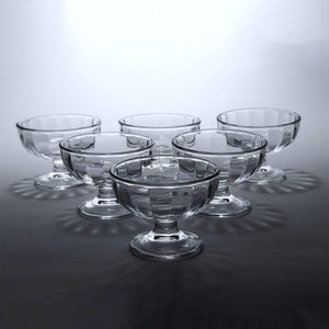 Serve your favorite chilled desserts in style with this elegant 6-piece glass dessert bowl set. Each bowl is crafted from premium clear glass with a stylish footed base, giving your table a touch of timeless charm. Ideal for ice creams, puddings, fruit salads, custards, or any sweet servings. These bowls are perfect for daily home use, special occasions, and gifting. Designed to enhance presentation while offering lasting durability, this set comes securely packed in a protective brown box.