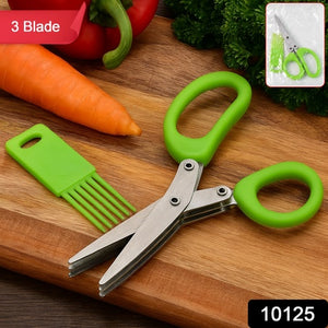 Simplify your food preparation with these Premium 3-Blade Multipurpose Kitchen Scissors. Designed with three sharp stainless steel blades, these scissors allow you to chop herbs, vegetables, and spices quickly and evenly, saving time and effort compared to traditional chopping. The included cleaning comb makes it easy to remove stuck pieces from between the blades, ensuring hassle-free maintenance. With large ergonomic handles covered in a soft non-slip grip, these scissors are safe, comfortable, and efficient to use for everyday kitchen needs. Whether you’re preparing salads, garnishing dishes, or finely cutting vegetables, this multi-blade scissor is the perfect tool for modern kitchens.