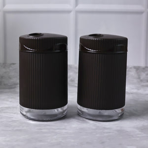 2-piece dispenser set for salt, pepper, or other ground spices.
