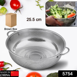 Stainless Steel Colander With Handle | Large Metal Mesh Basket Strainer For Pasta, Spaghetti, Berry, Veggies, Fruits (1 Pc 25.5 Cm)