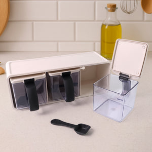 3 Transparent Containers: For storing a variety of seasonings like salt, sugar, chili, turmeric, and more.