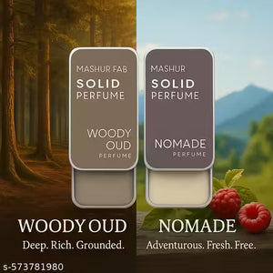 Discover the perfect balance of elegance and freshness with the MASHUR FAB Solid Perfume Duo – Woody Oud & Nomade. Crafted with natural oils and a premium wax base, these alcohol-free solid colognes are designed for long-lasting fragrance and travel-friendly convenience.